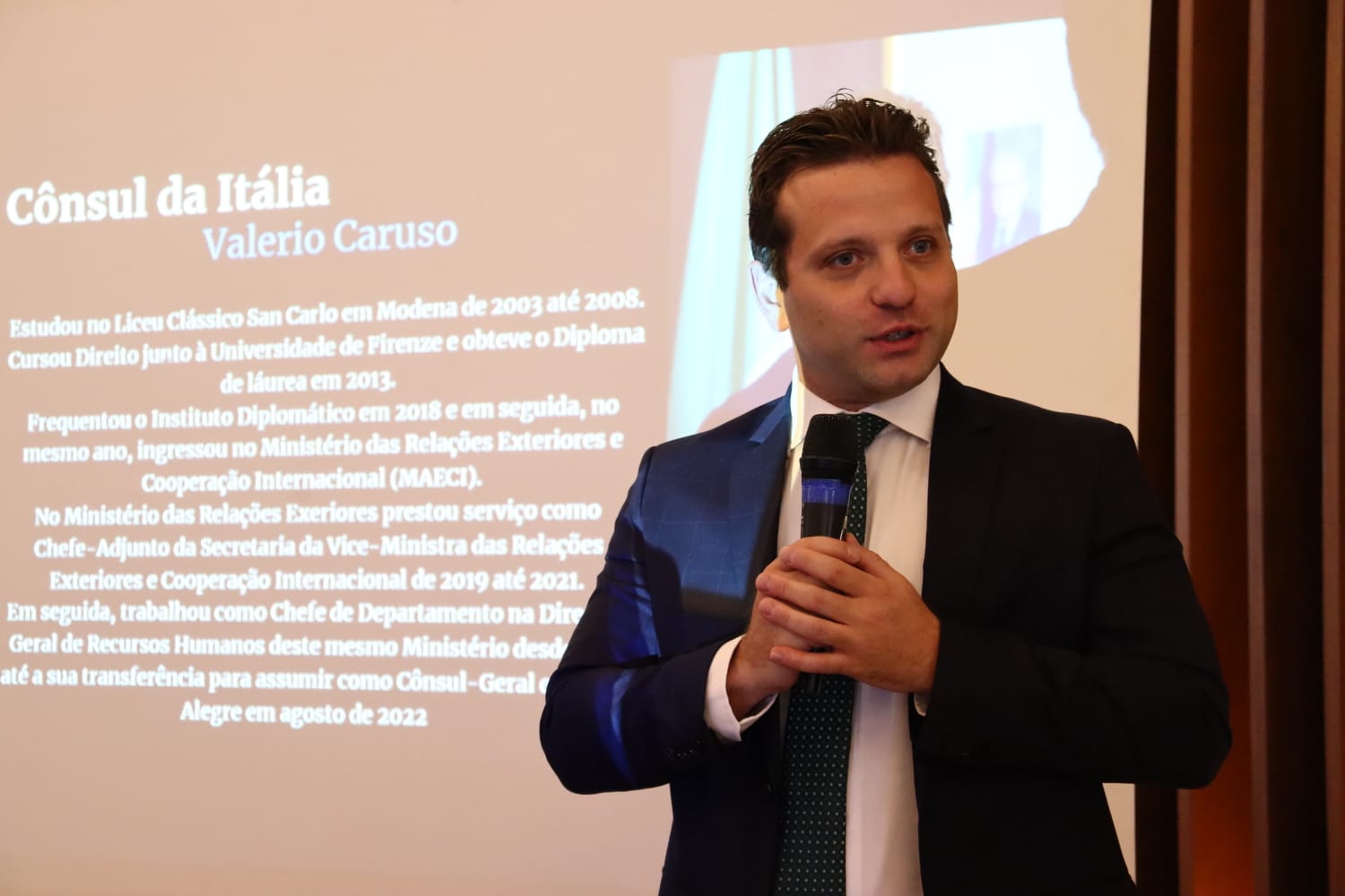 Ao lado do Cônsul, o diretor da Câmara Italiana RS, Filippo Mariani, apresentou o trabalho realizado pela instituição, que atua como ponte para o fomento de negócios, intercâmbio cultural e cooperação estratégica entre empresas, universidades e governos dos dois países.
